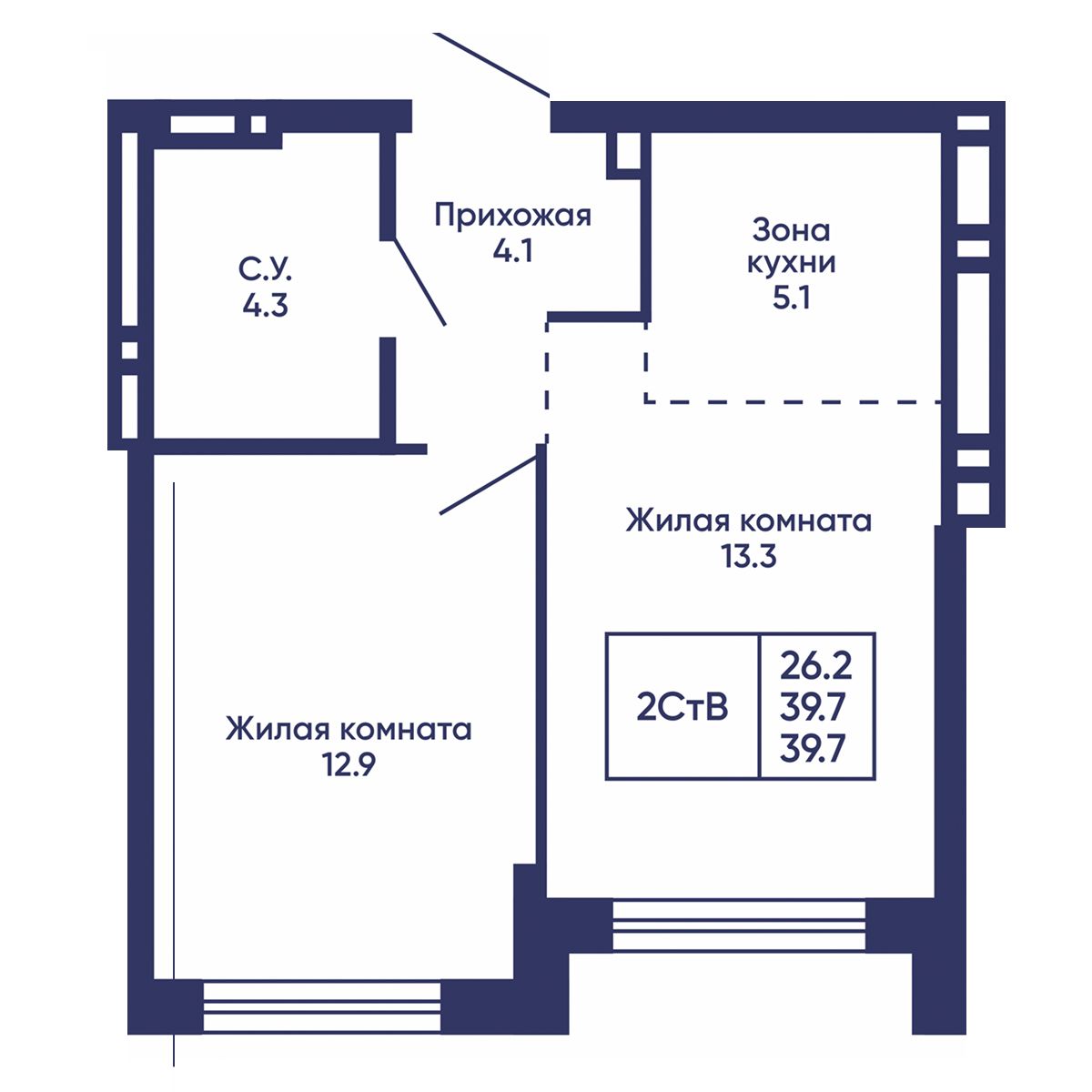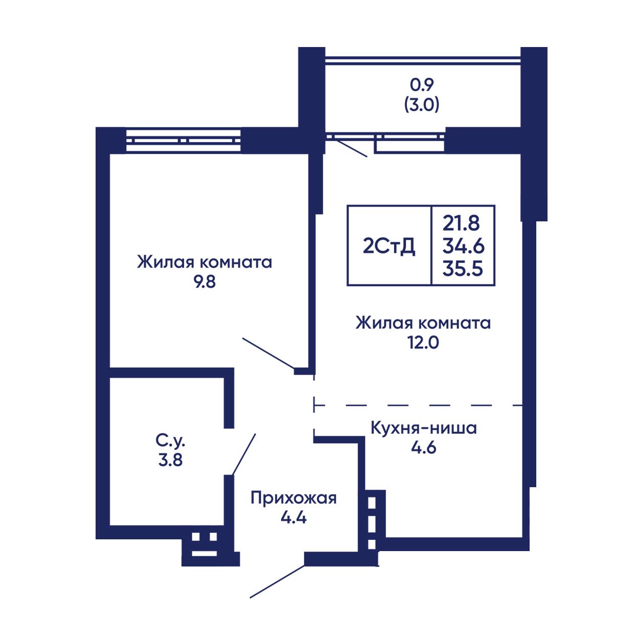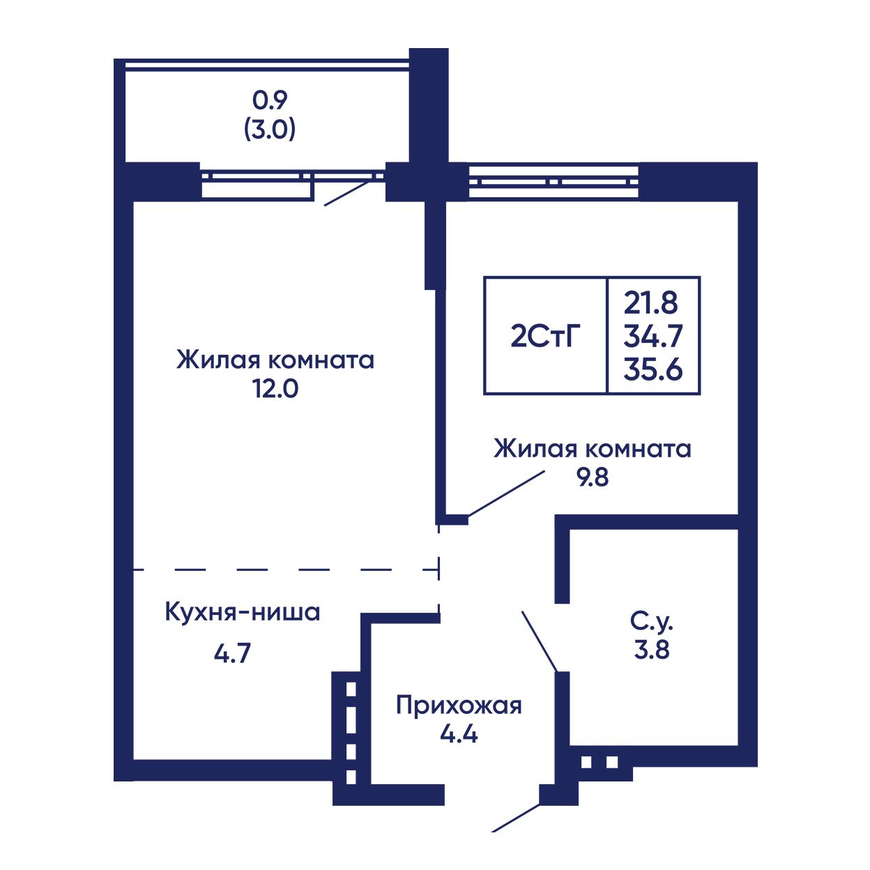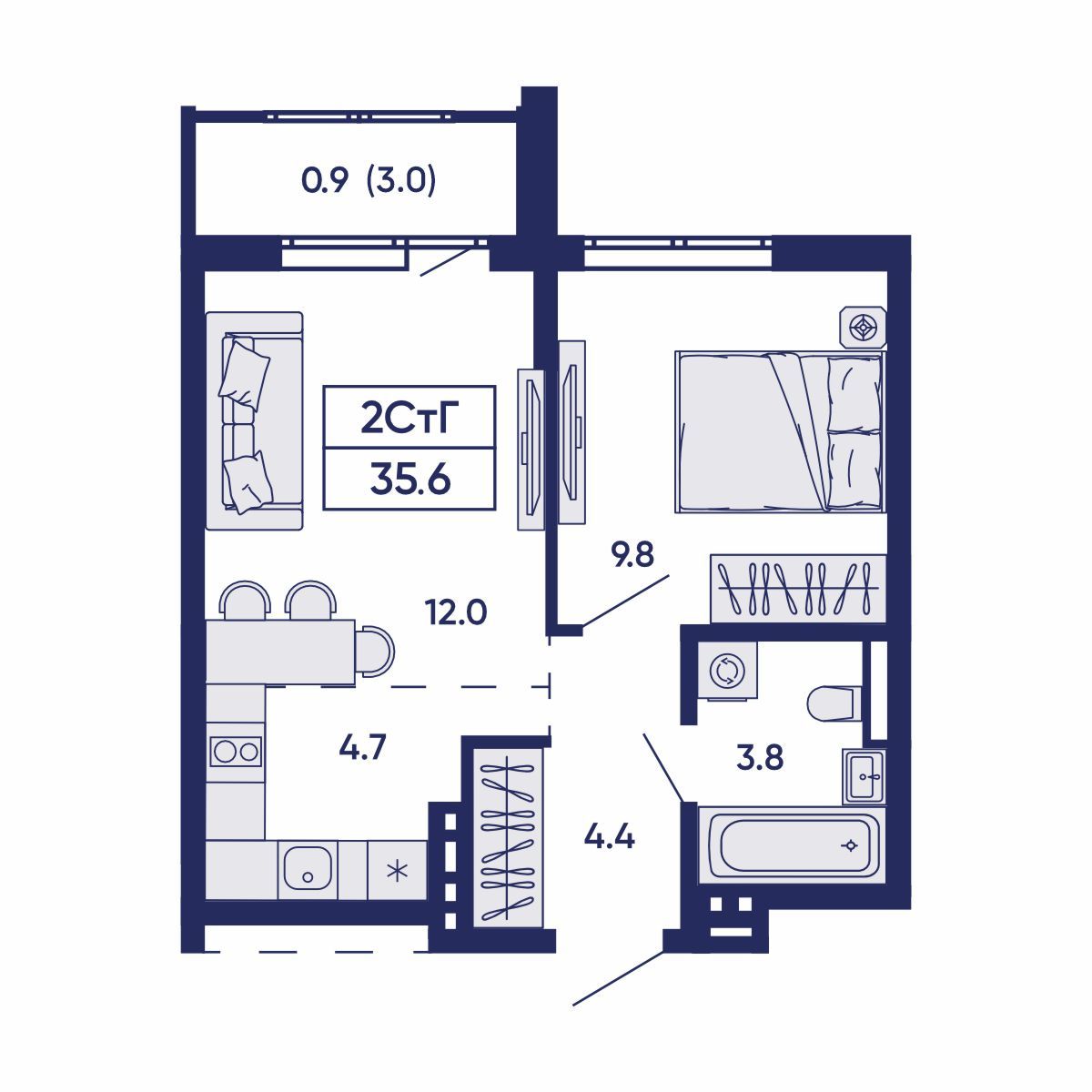 2-комнатная квартира 35.6 м² №744