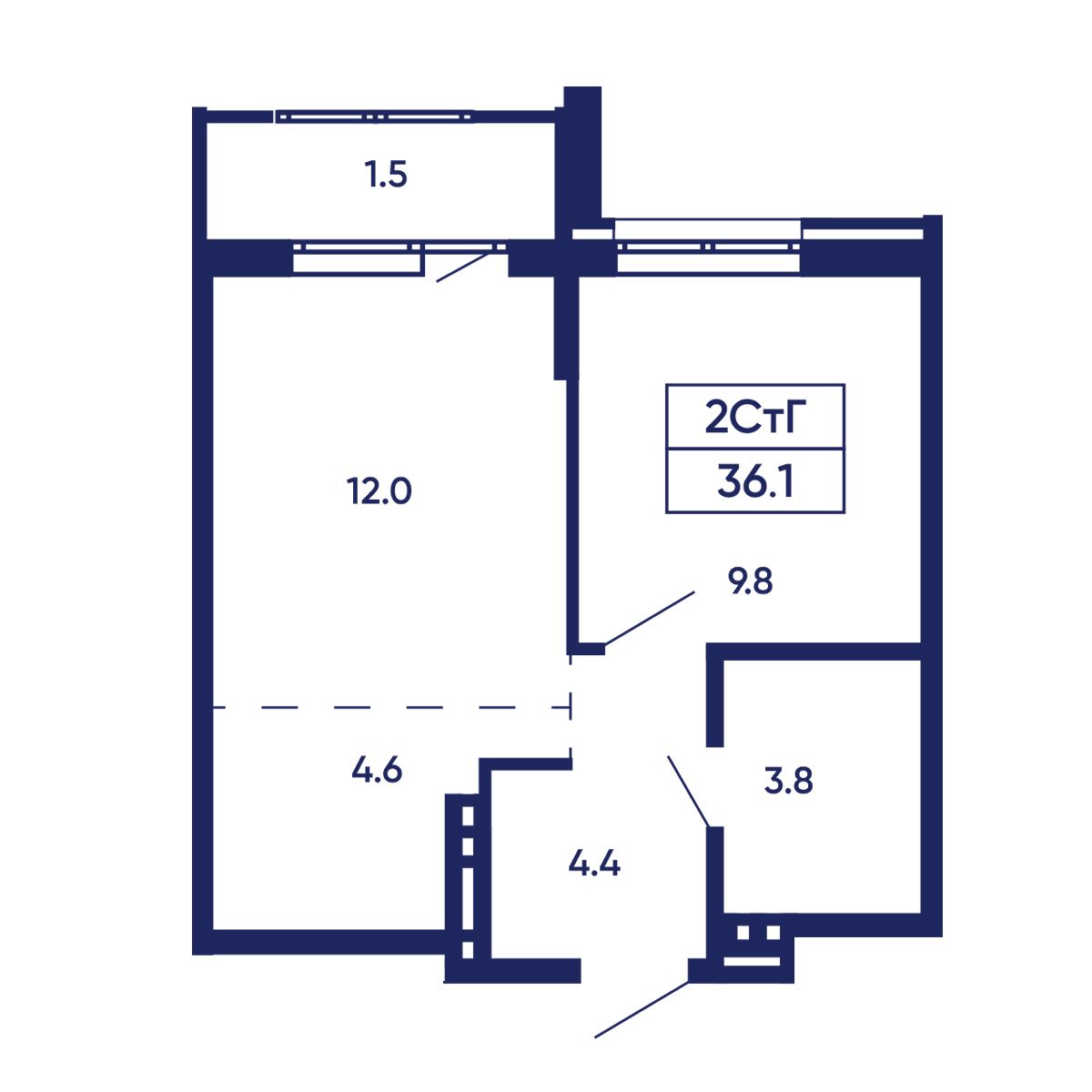 Общая площадь: 36.1 м²
