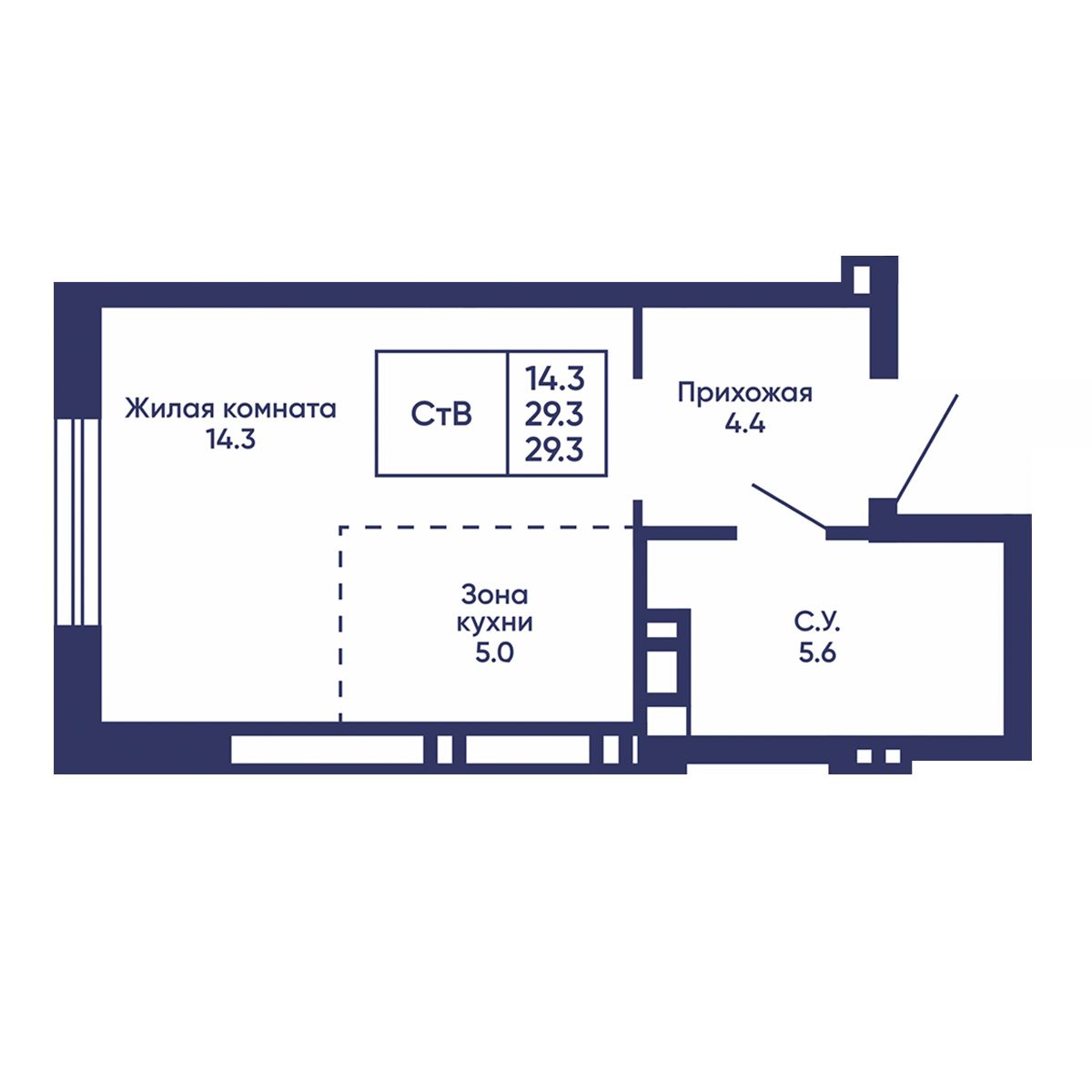 Общая площадь: 29.3 м²