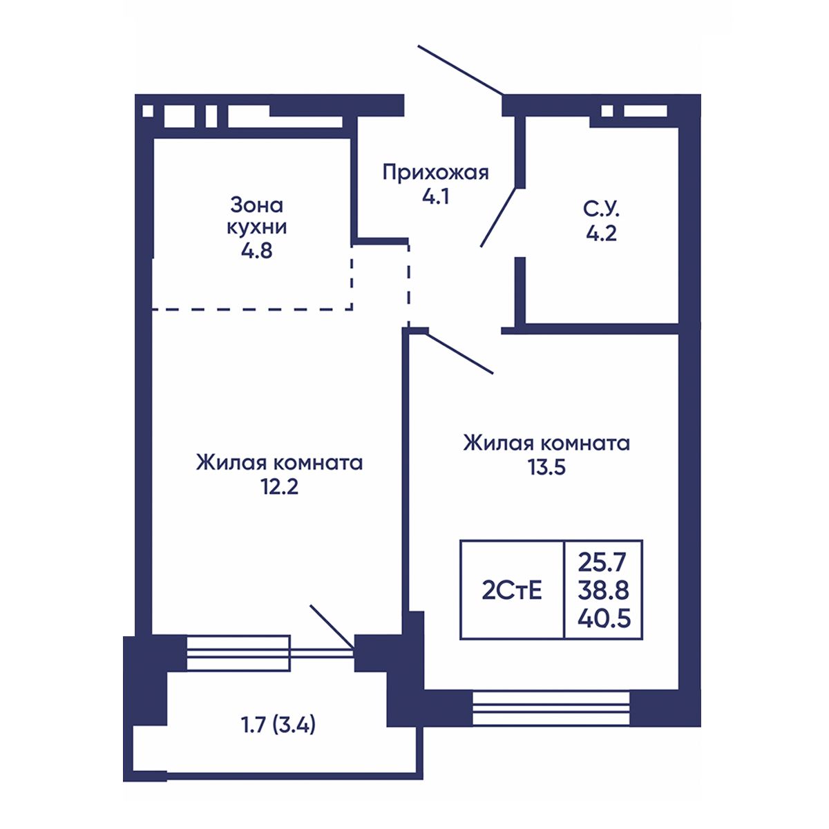 Общая площадь: 40.5 м²