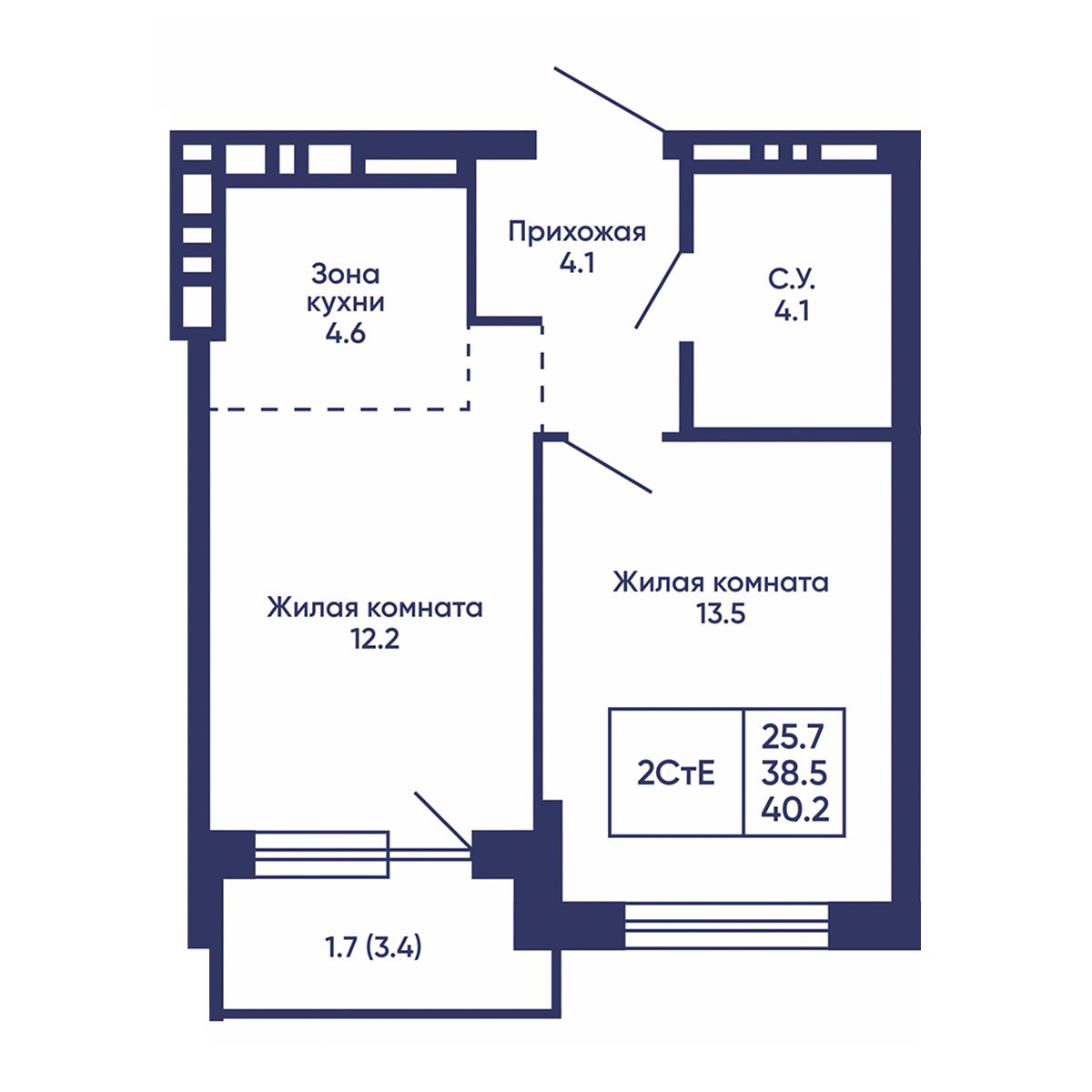 Общая площадь: 40.2 м²