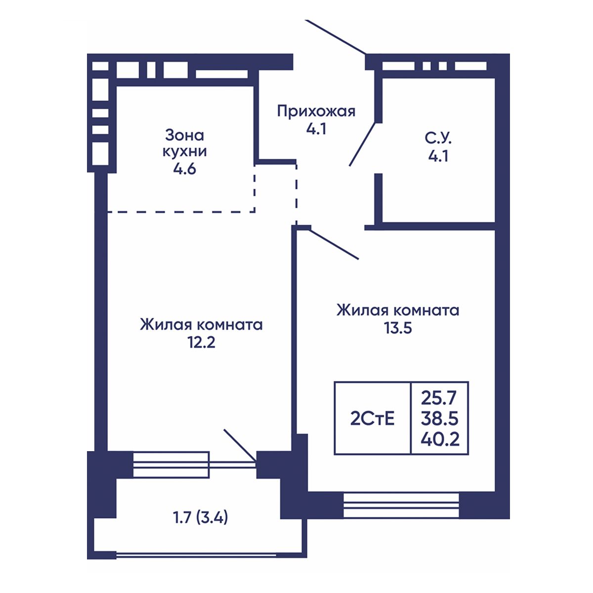 Общая площадь: 40.2 м²
