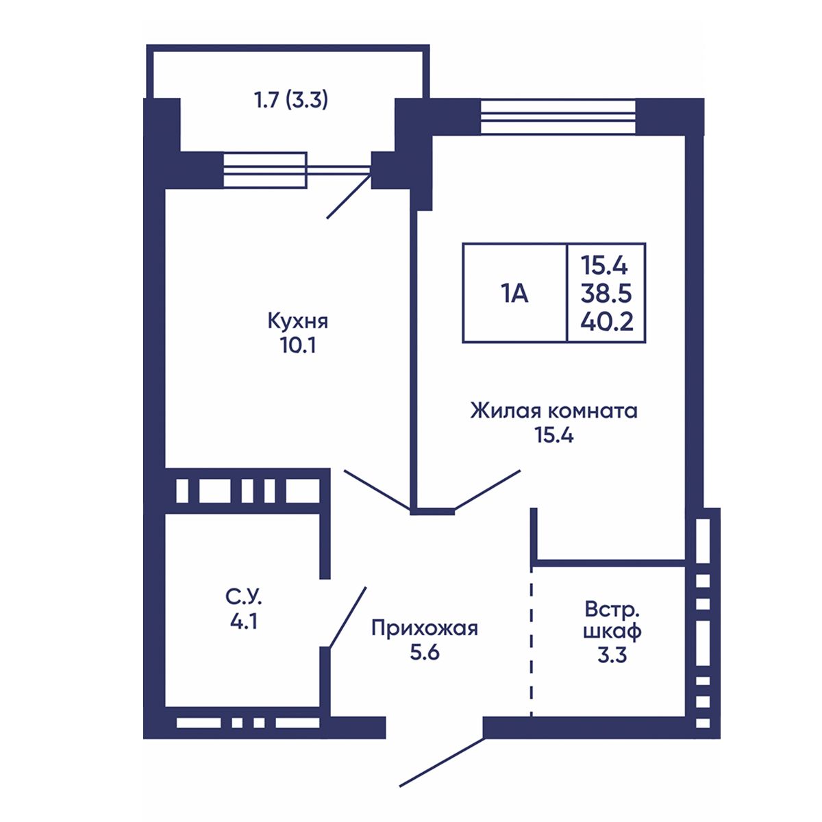 Общая площадь: 40.2 м²