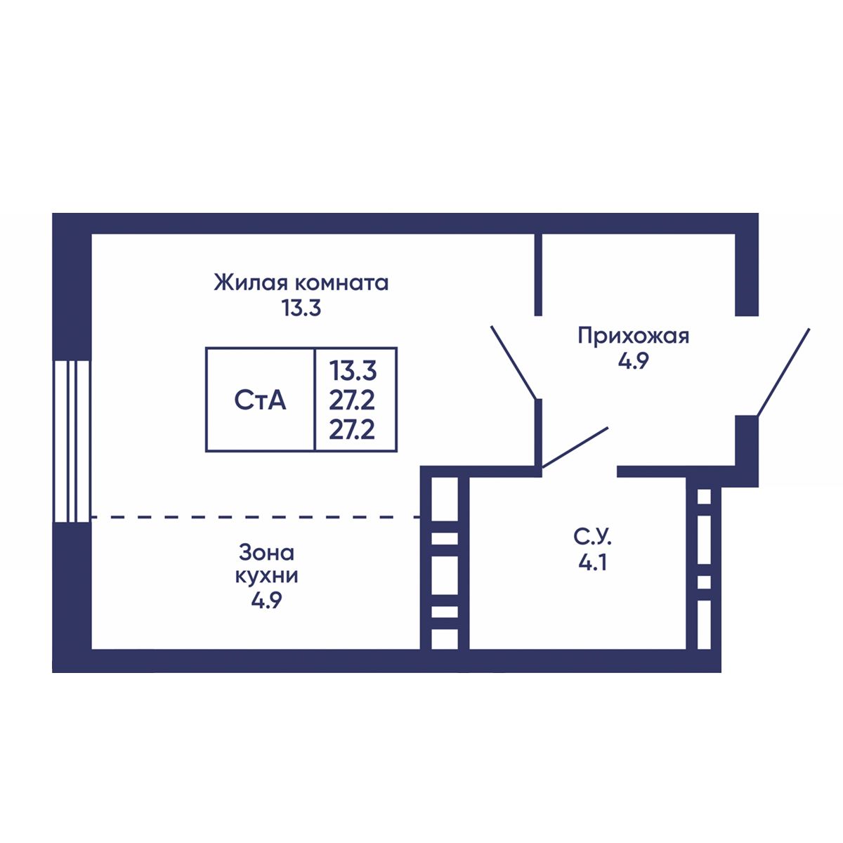 Общая площадь: 27.2 м²
