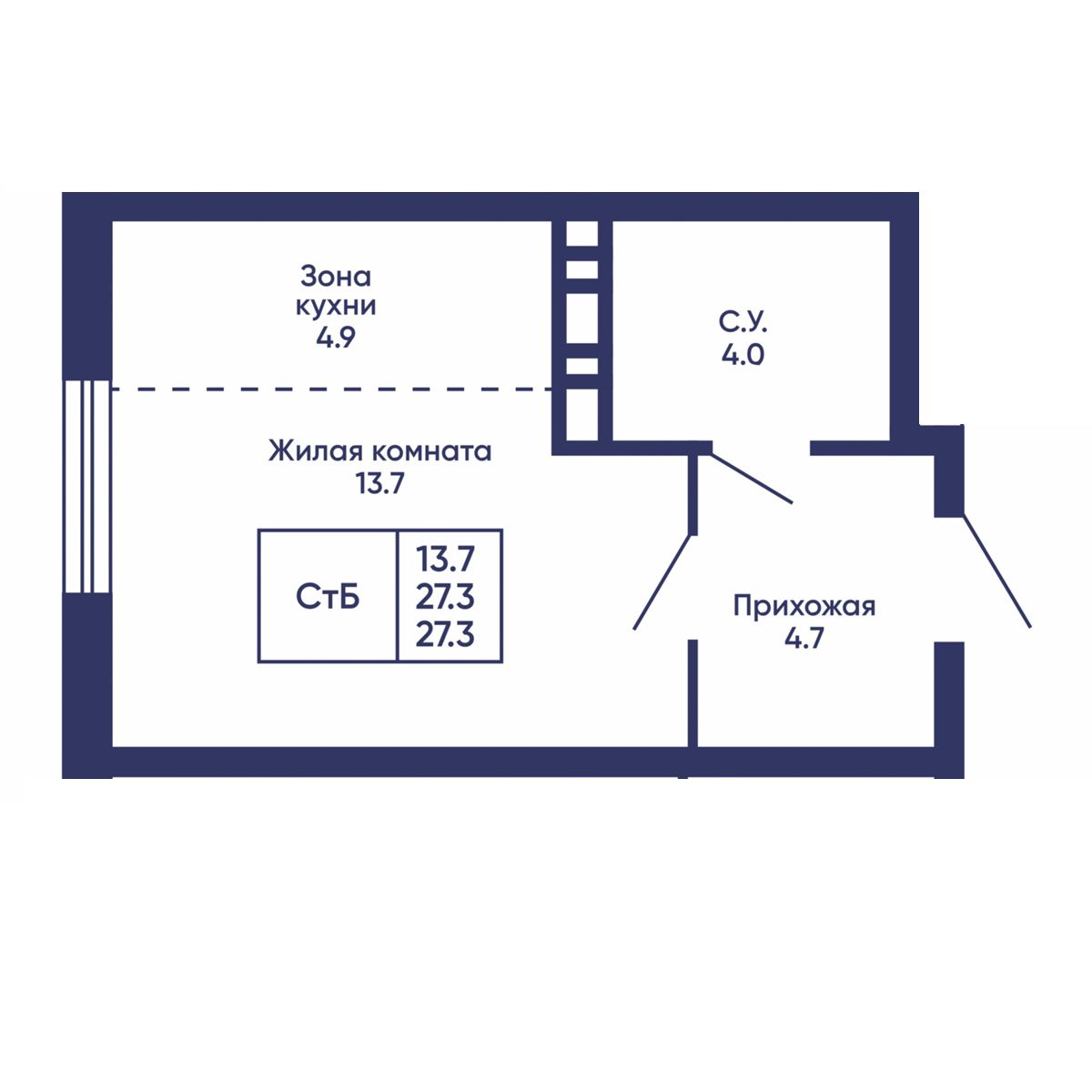 Общая площадь: 27.3 м²
