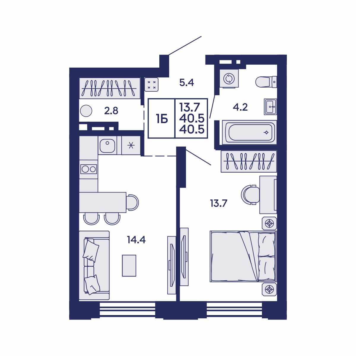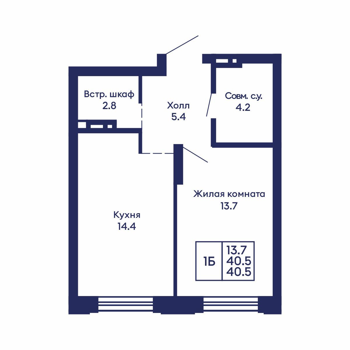 Общая площадь: 40.5 м²