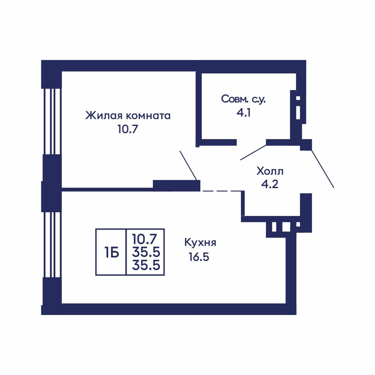 Общая площадь: 35.5 м²