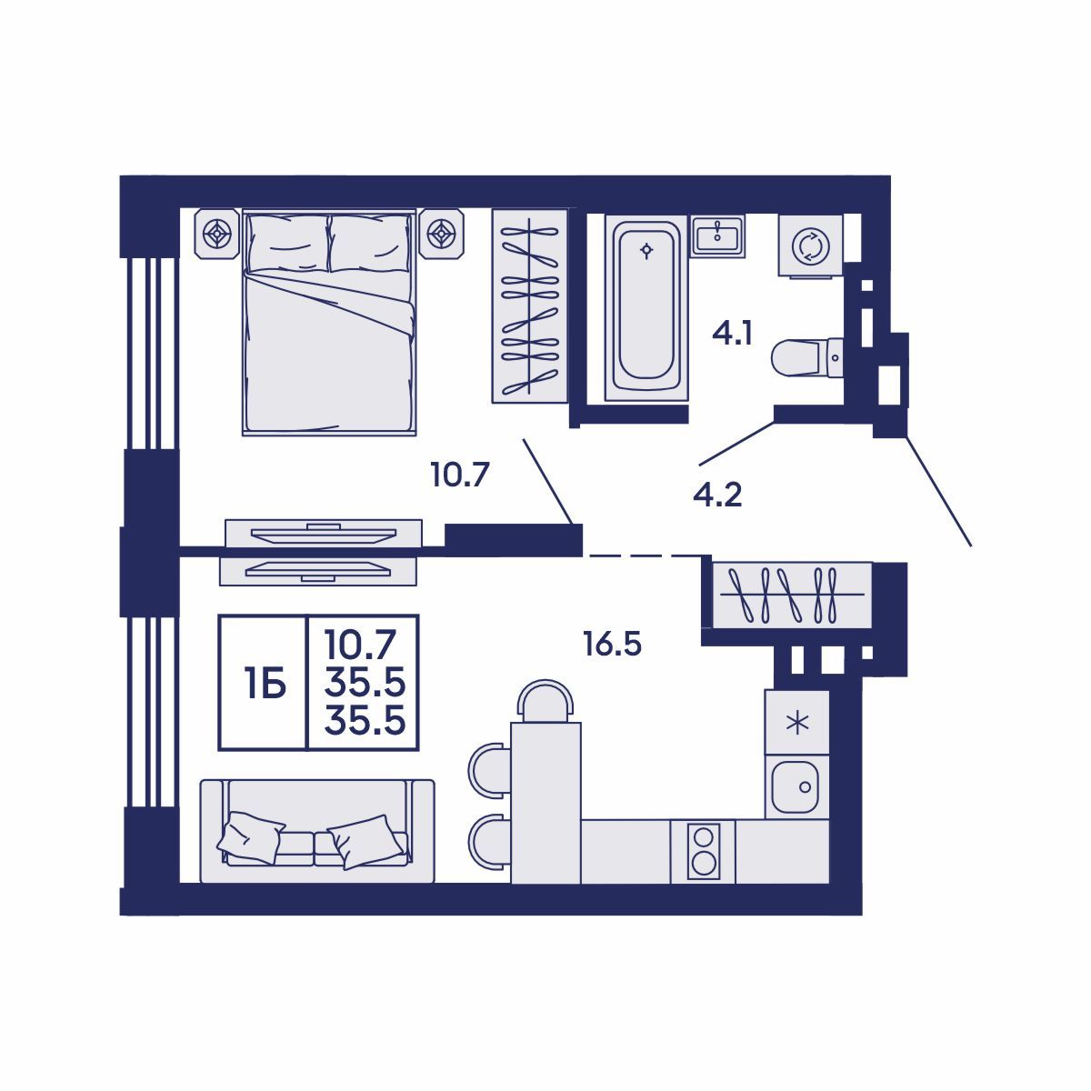 Общая площадь: 35.5 м²