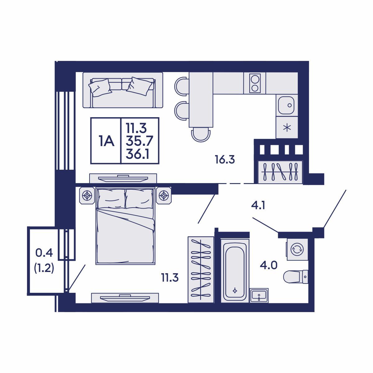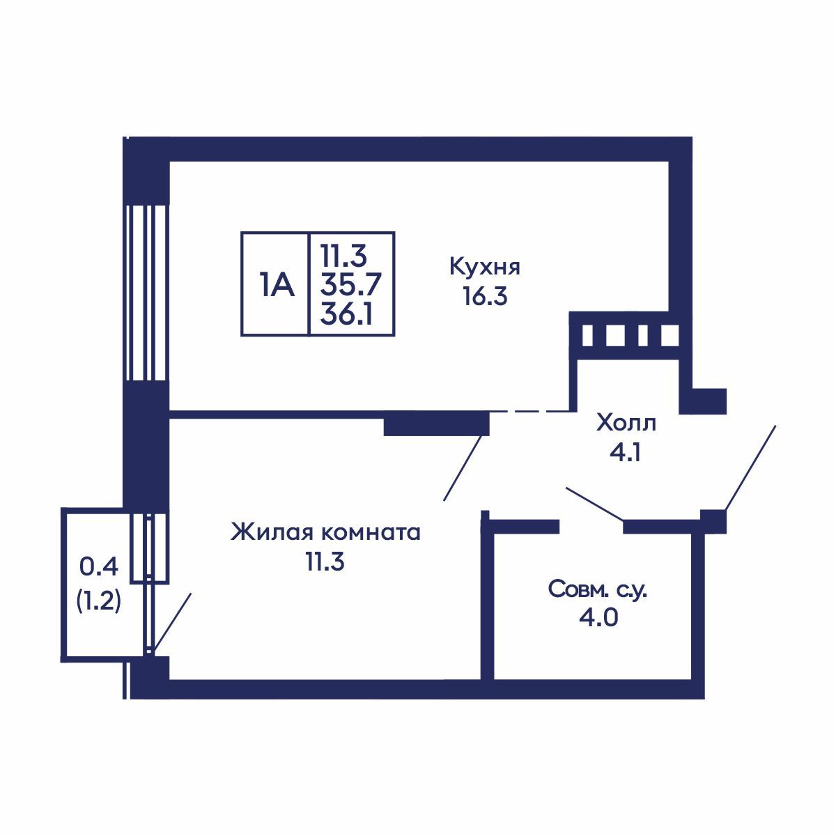 Общая площадь: 36.1 м²