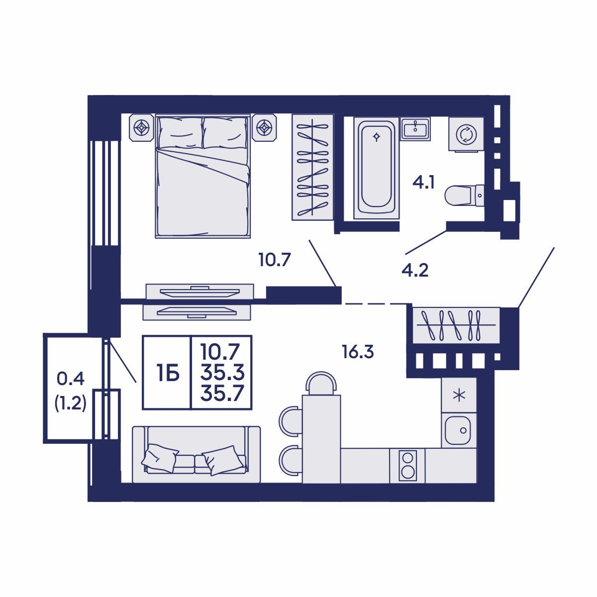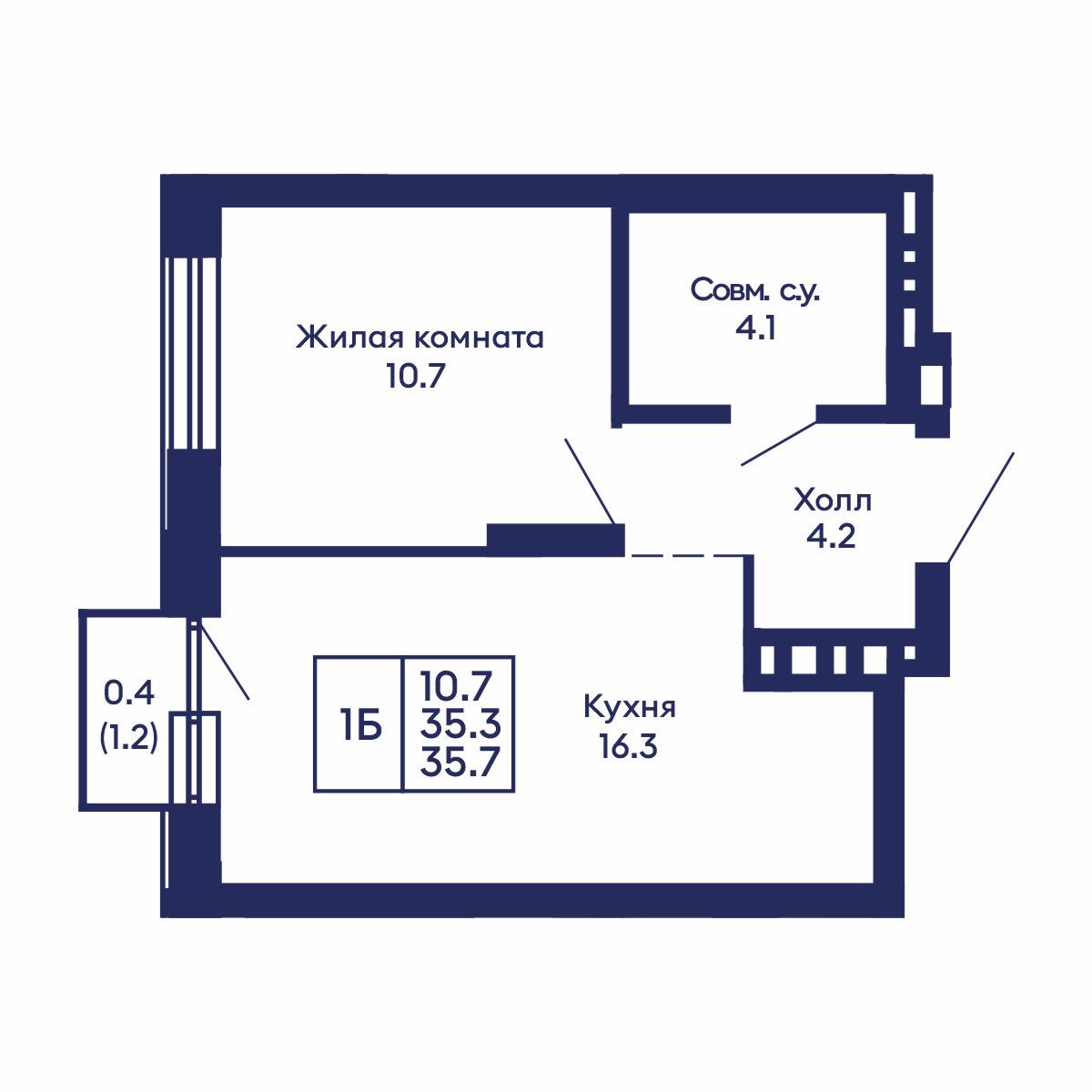 Общая площадь: 35.7 м²