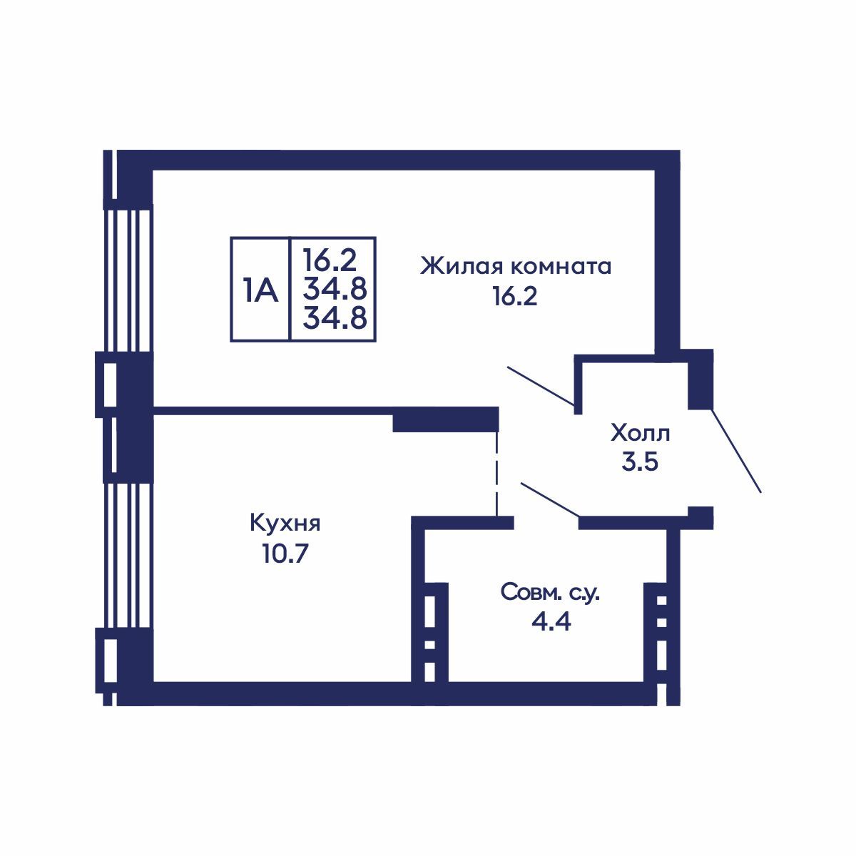 Общая площадь: 34.8 м²