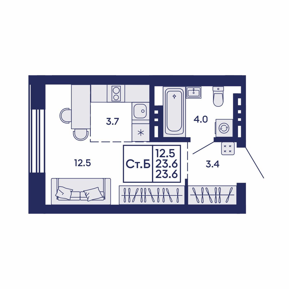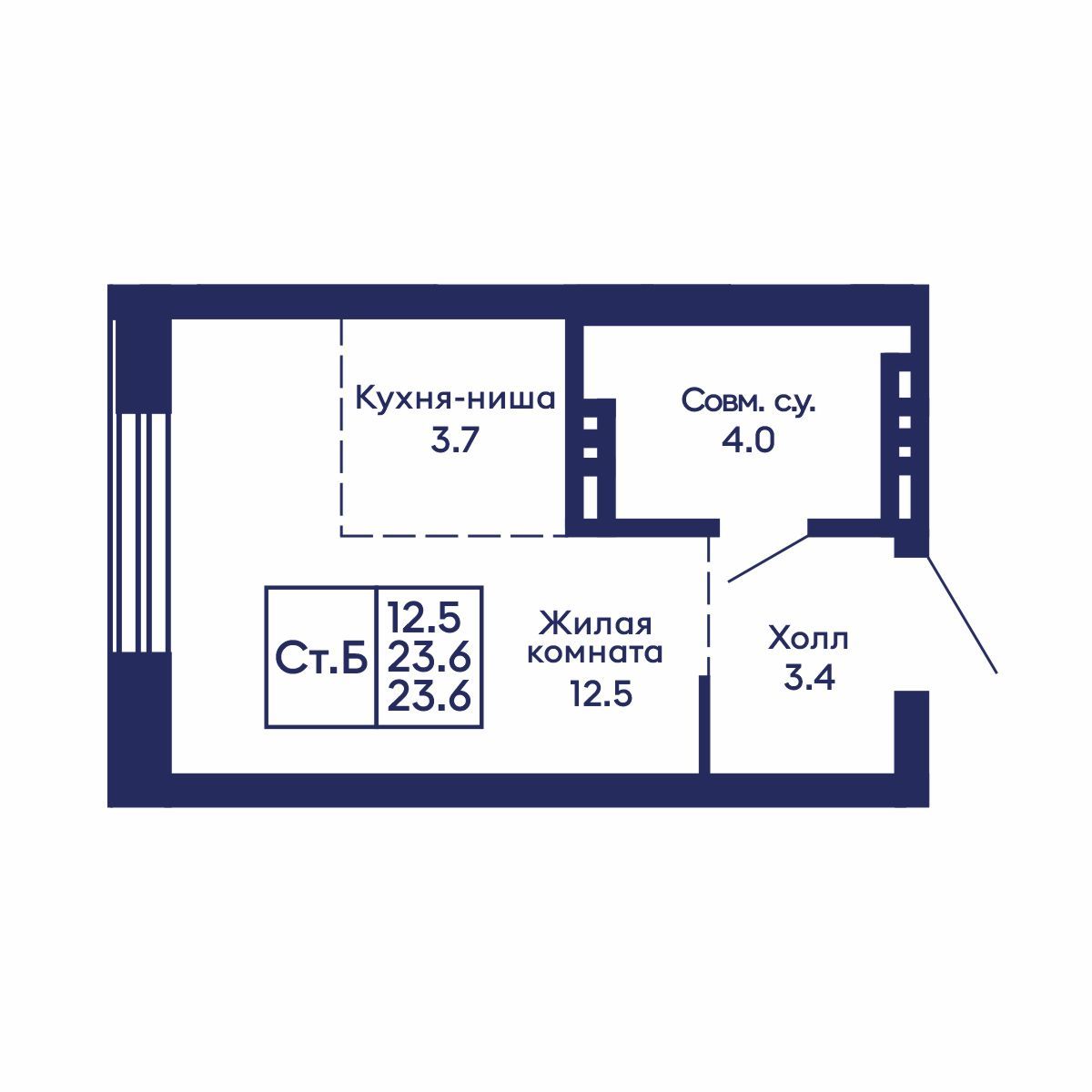 Общая площадь: 23.6 м²