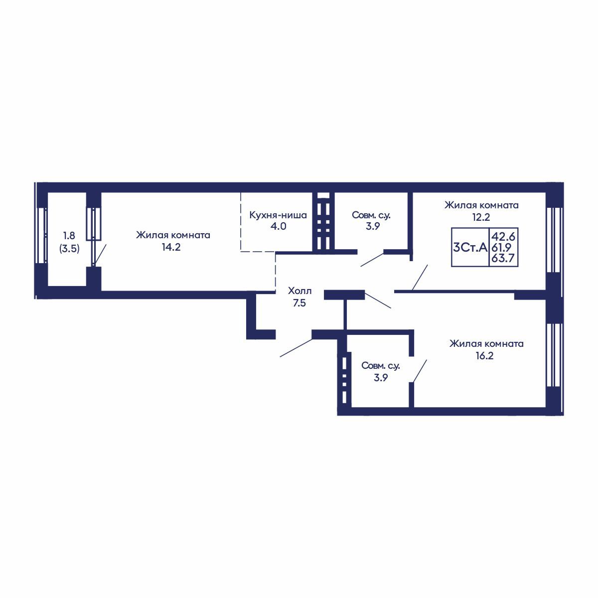 Общая площадь: 63.7 м²