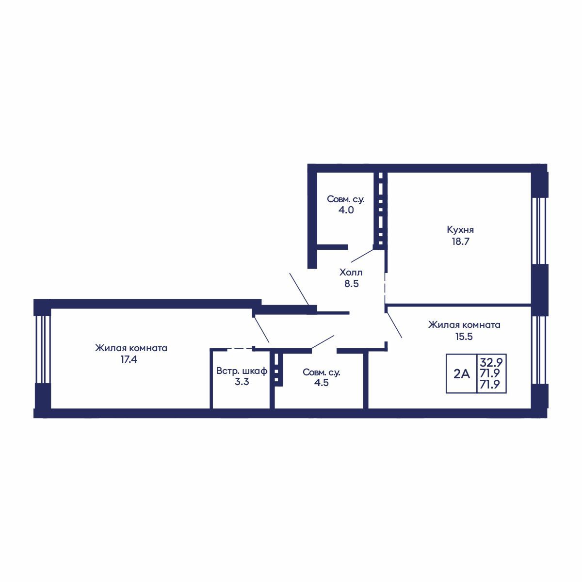 Общая площадь: 71.9 м²