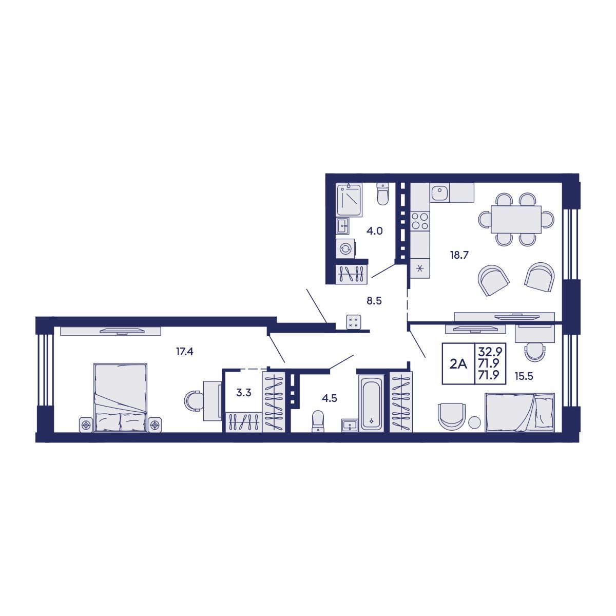 2-комнатная квартира 71.9 м² № 392