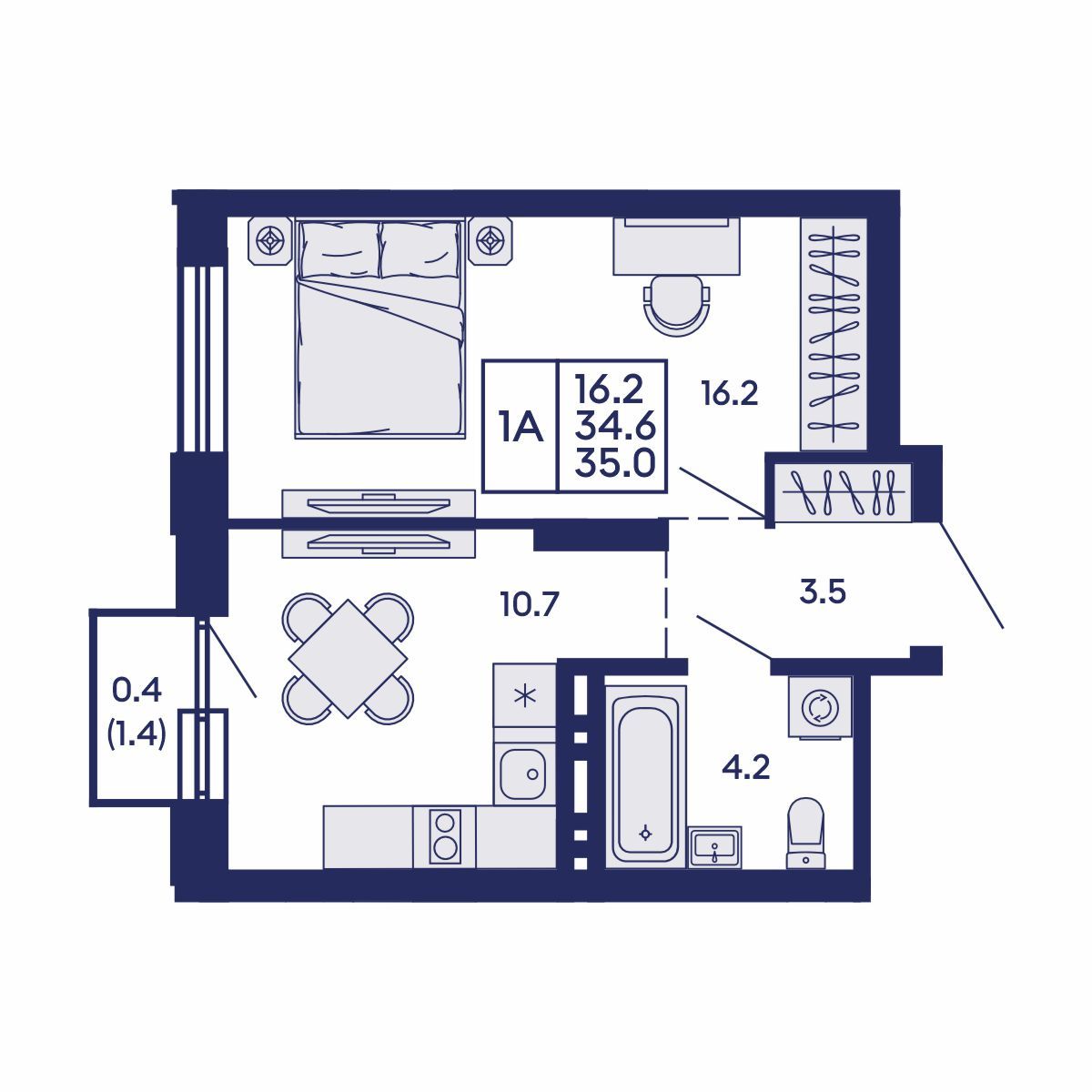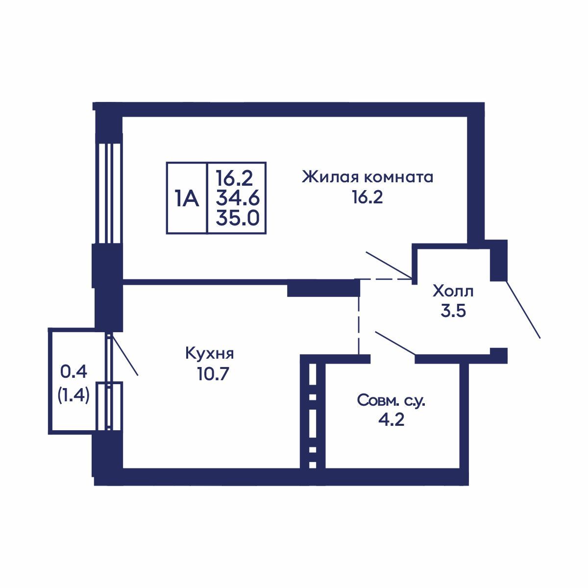 Общая площадь: 35 м²