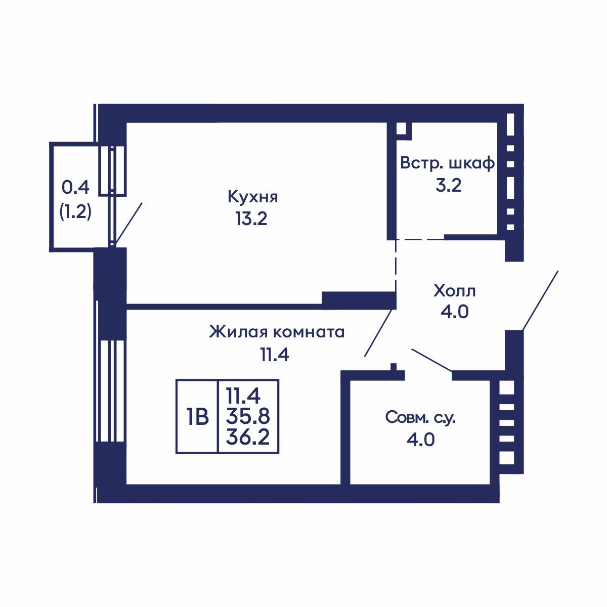 Общая площадь: 36.2 м²