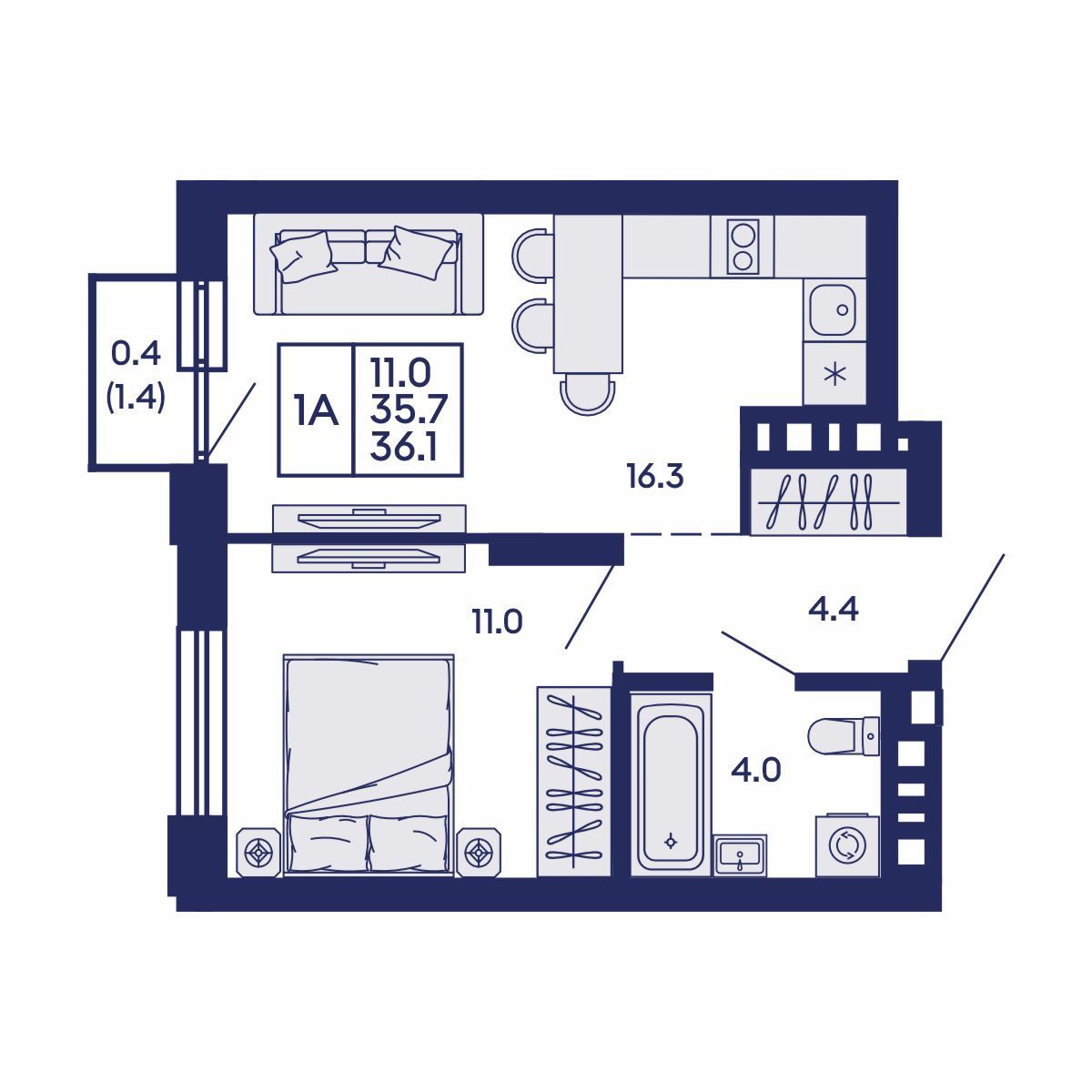 Общая площадь: 36.1 м²