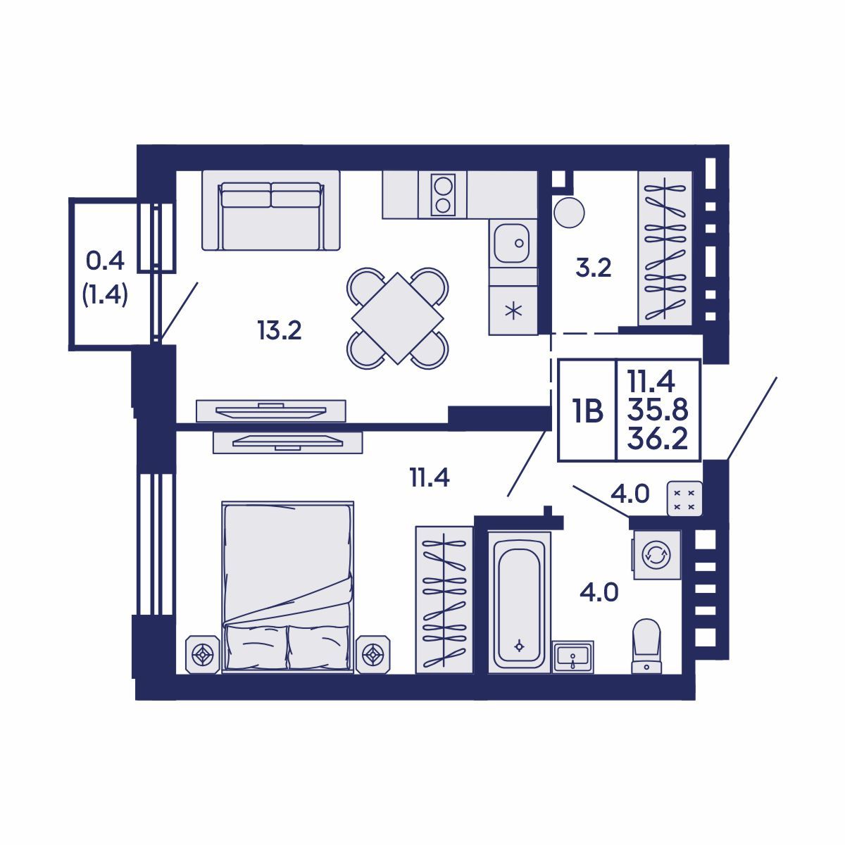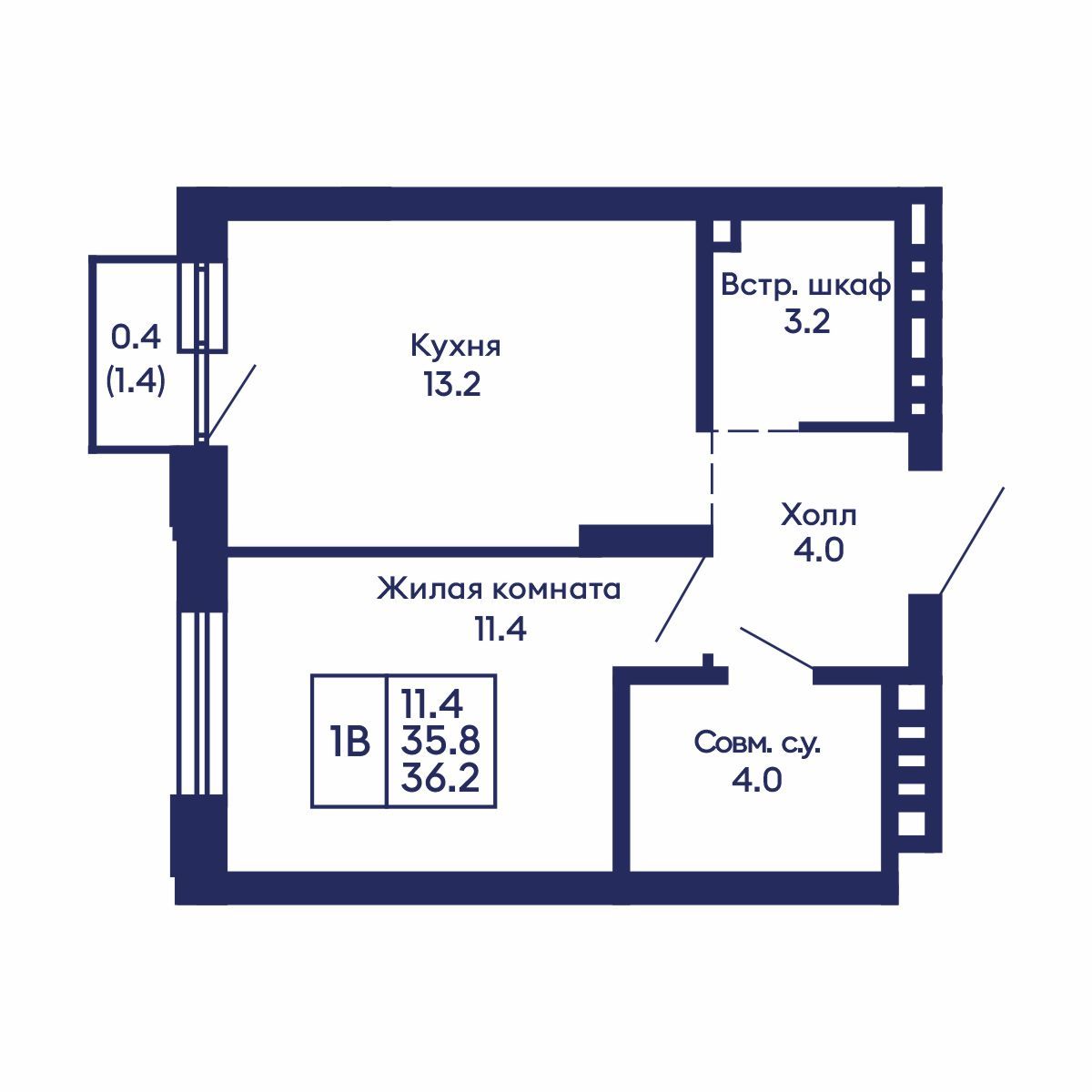 Общая площадь: 36.2 м²