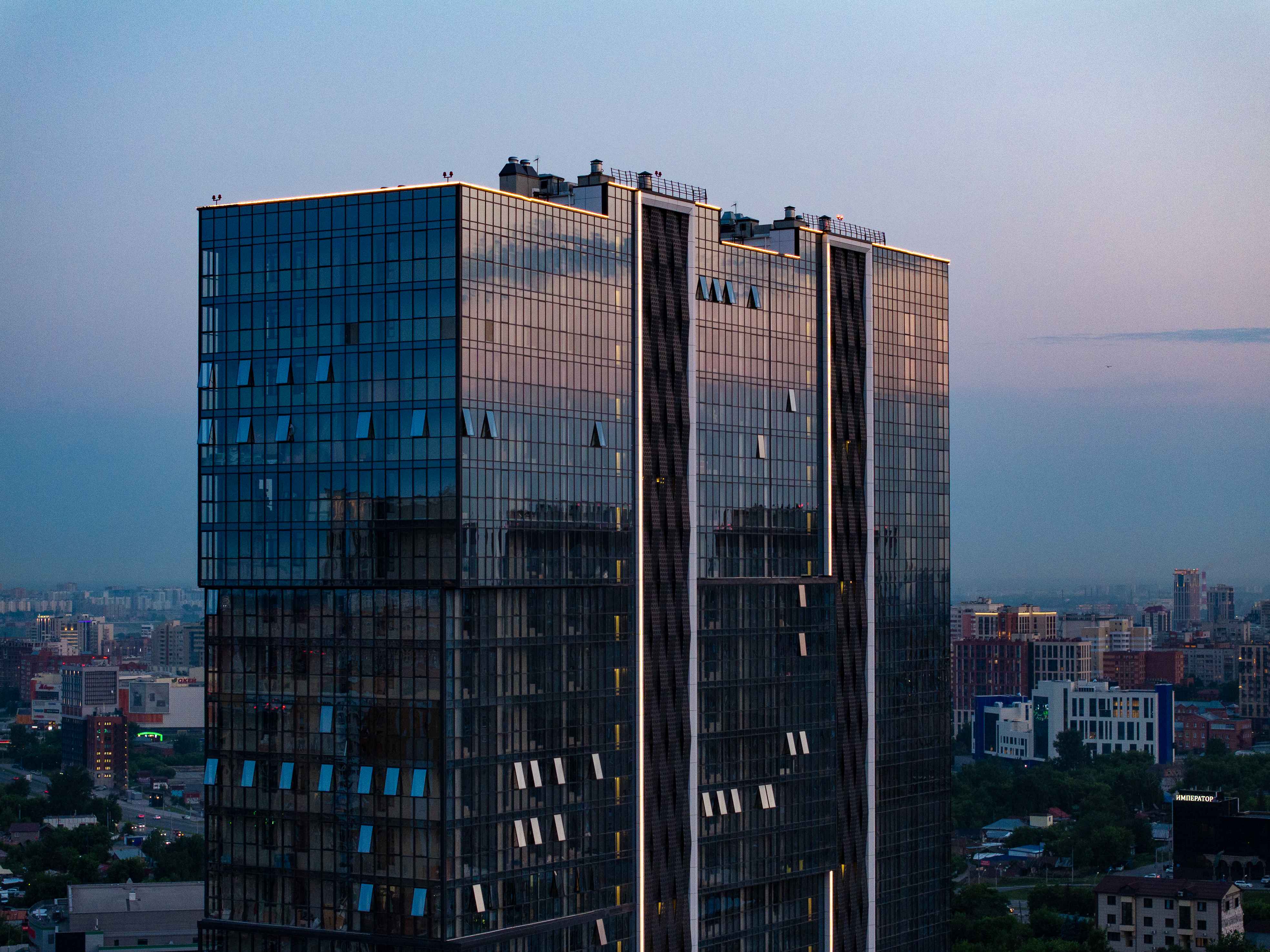 Панорамное остекление создает особую атмосферу в квартирах жилого комплекса, наполняя пространство солнечным светом и даря ощущение простора. Витражные окна добавляют шарма и фасаду здания, эффектно отражая городские пейзажи. Остекление комплекса имеет максимально комфортную тонировку для того, чтобы инсоляция была на высоком уровне отражаемости фасада и защищала жителей от посторонних глаз снаружи.